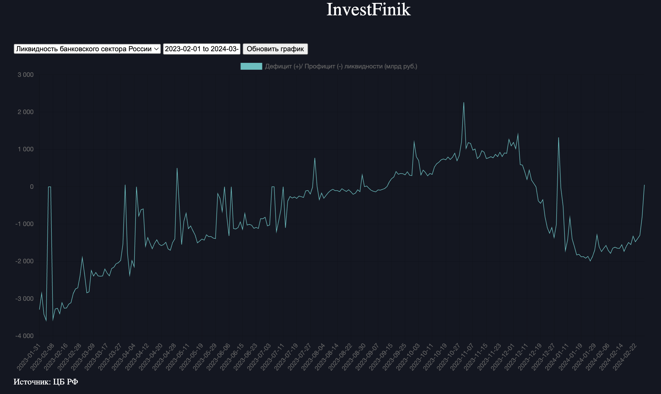 По состоянию на сегодняшнее утро профицит ликвидности, который наблюдался в банковской системе весь текущий год, сменился дефицитом. Пока он достаточно скромен - 50,5 млрд рублей, однако интересна динамика. Всего за два рабочих дня профицит в 1,3 трлн рублей сошел на нет.