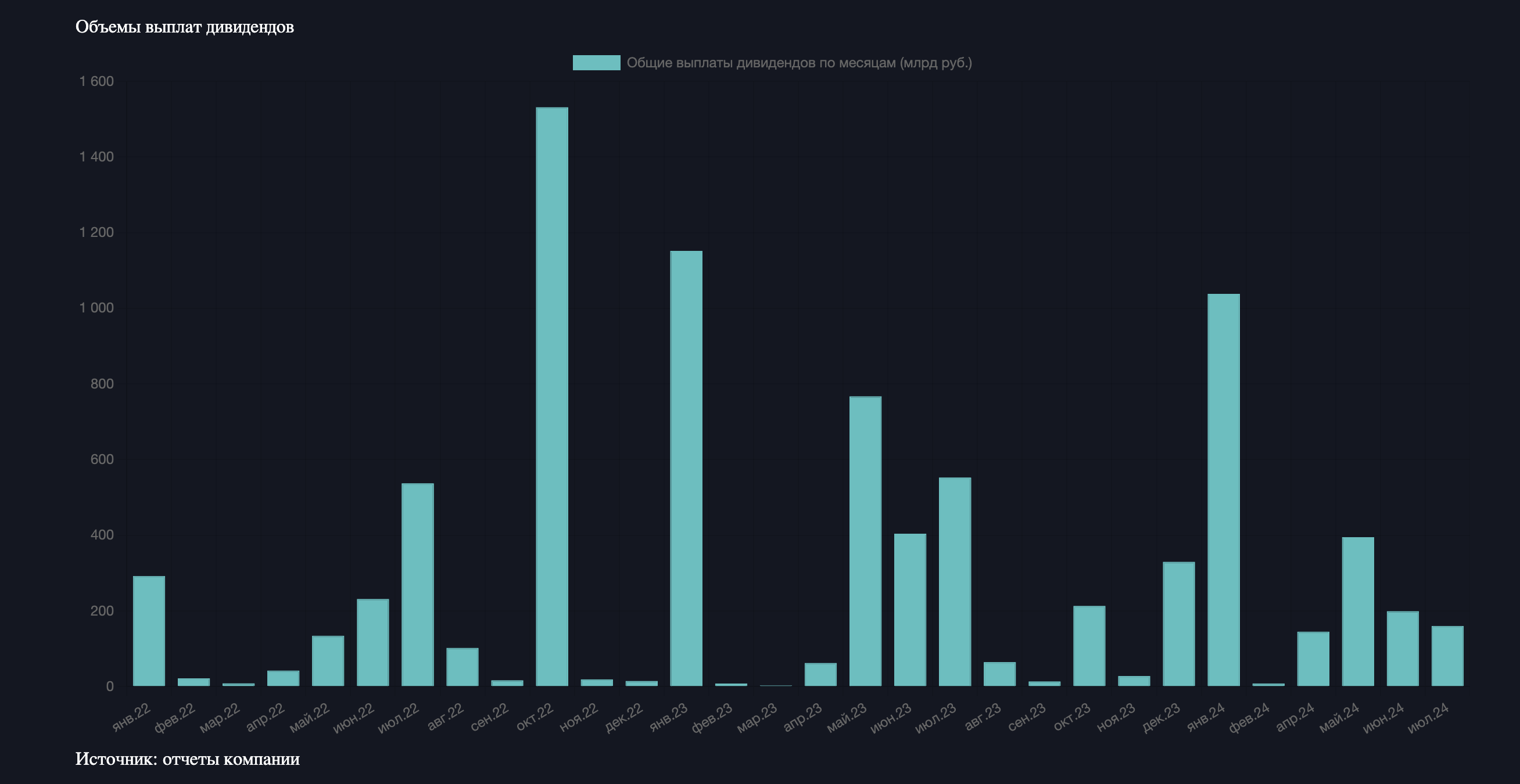 В текущем месяце больше не ожидается каких-либо существенных сумм, однако май традиционно считается сильным месяцем по дивидендам. На текущий момент известно о предстоящих выплатах на сумму в 394,9 млрд рублей. Стоит отметить, что пока еще не сказал свое слово Сбербанк . В последние два года банк выплачивал дивиденды в мае, но, видимо, в этом году график переносится на июнь-июль.