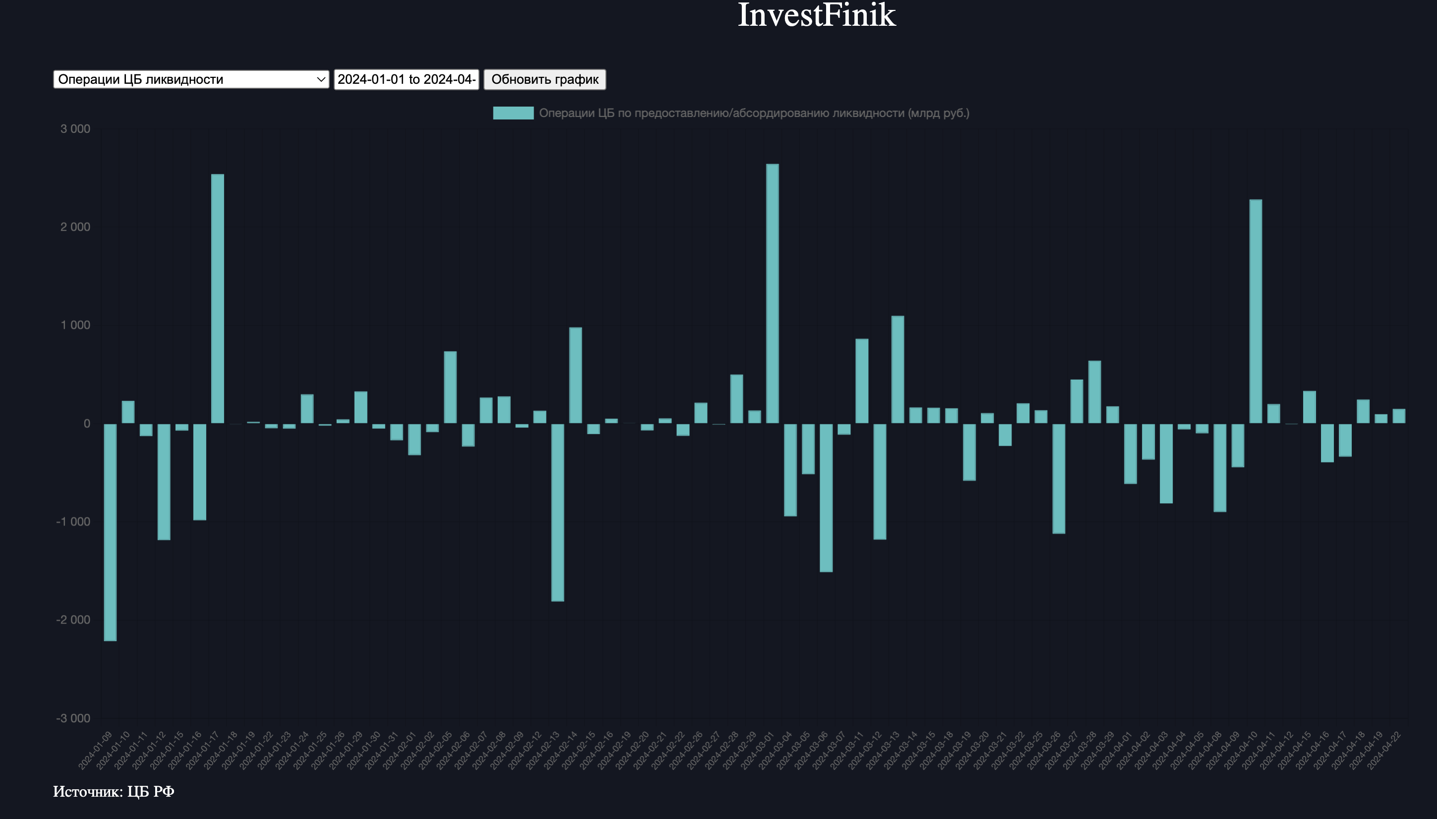 Банк России занимает нейтральную позицию на рынке, не проводя каких-либо серьезных и систематических операций по изъятию ликвидности с рынка. В понедельник регулятор влил в рынок 150,7 млрд рублей.