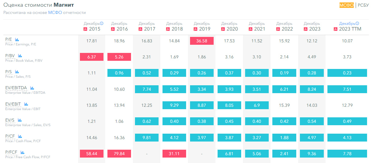 Сложно обойтись без сравнения с конкурентами. X5 Retail Group сейчас стоит примерно на 10-15% дешевле Магнита по метрикам, а выручка и прибыль растёт немного быстрее. Последний разбор X5 делал в марте. Если сравнивать с другими, то Лента стоит дороже, её разбора я еще не делал, кстати надо будет заняться. O'Key Group сейчас вообще убыток показал, по P/E не сравнить, а по P/B и P/S дешевле Магнита. Получается Магнит - оценивается по сравнению с конкурентами примерно одинаково, плюс-минус, с некоторыми особенностями.