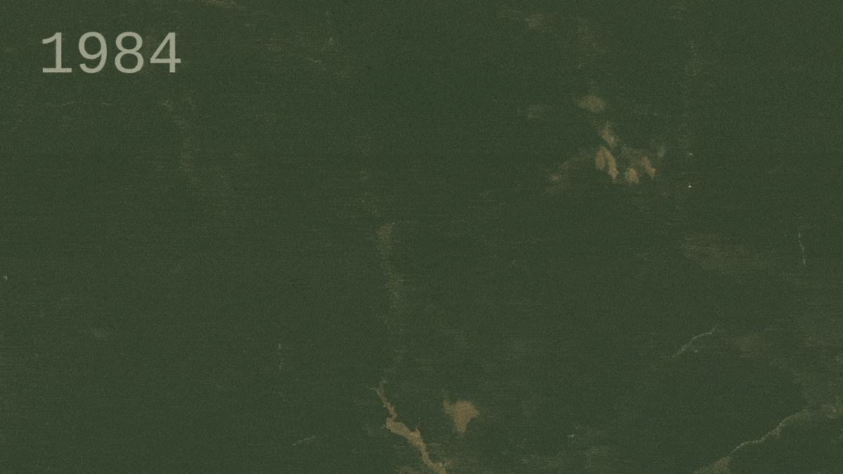 На следующей картинке видим как изменяется площадь лесов с 1984 по 2016 год на одной из территорий Бразилии: