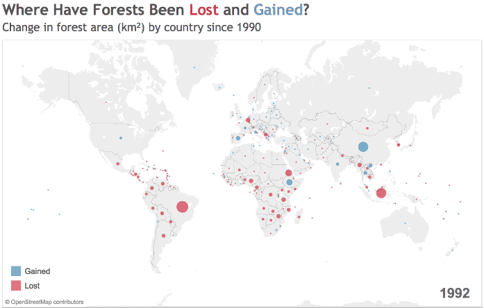 Картинка первая, на ней мы видим как изменяется площадь лесов по странам мира с 1990 года. Она увеличивается в развитых странах включая Россию что отрадно и Китай. И сильно уменьшается в южной америке, африке индонезии: