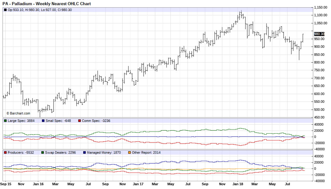 фонды с 27.08.2018 стали наращивать покупки. Палладий опережает золото на пару