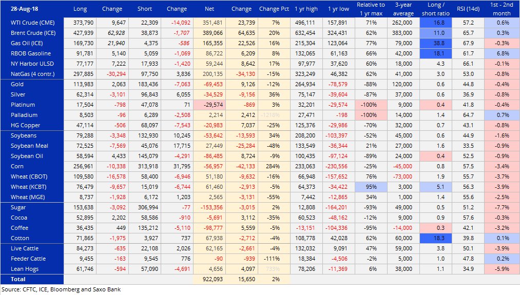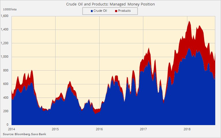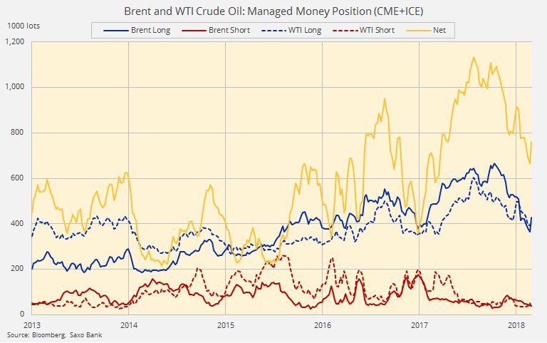 В нефти и нефтепродуктах было куплено 126 тысяч лотов в общей сложности, с увеличением на 65 тысяч в бренте. Наибольший недельный скачёк с декабря 2016 года: