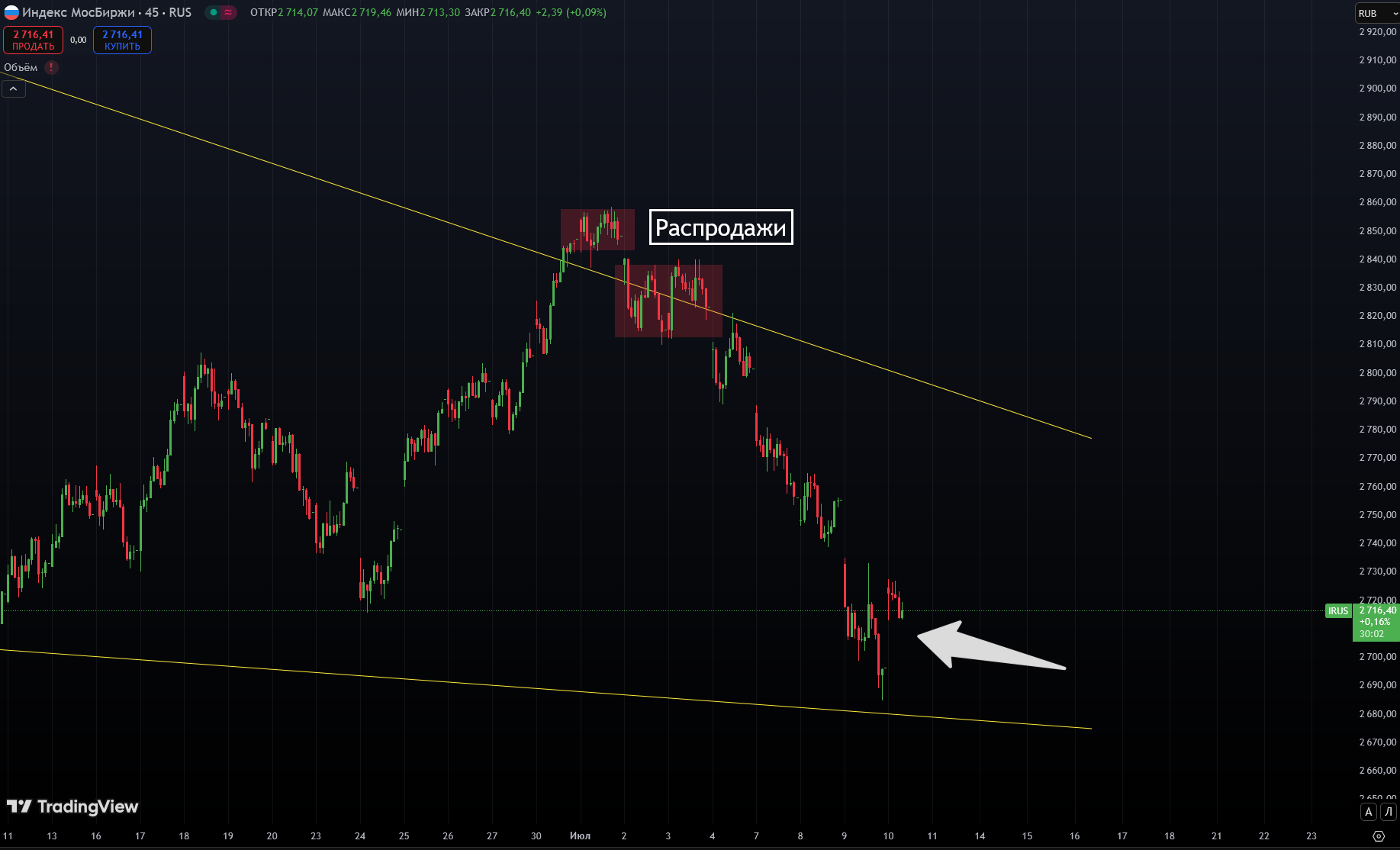 Начну с того что инвесторы вчера сильно испугались, что завершило нисходяший тренд который я вел с 01 июля.