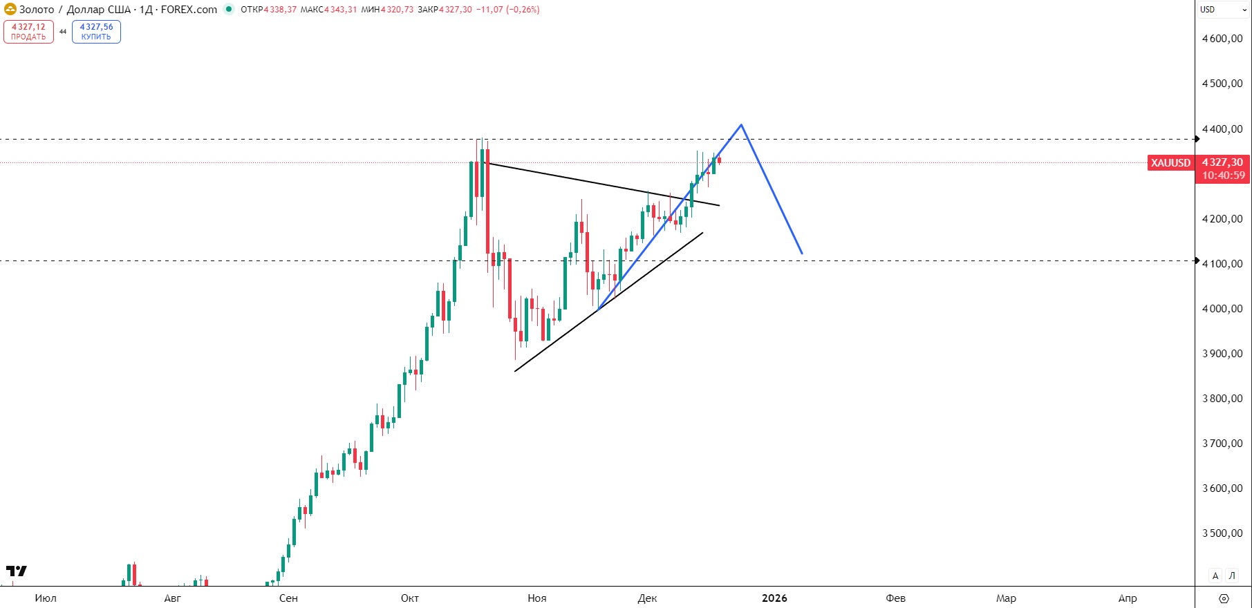В скором времени было бы логичным увидеть коррекцию в желтом металле.