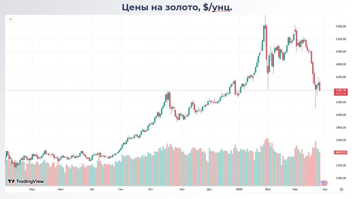 С момента начала конфликта на Ближнем Востоке цены на золото снизились уже на 16% — это один из самых слабых активов. Для сравнения: индекс южнокорейских акций KOSPI снизился на 12%, а индекс S&P500 — всего на 5%.