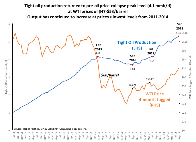 Добыча сланцевой нефти выше чем была перед обрушением цен на нефть.