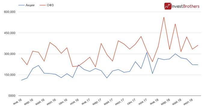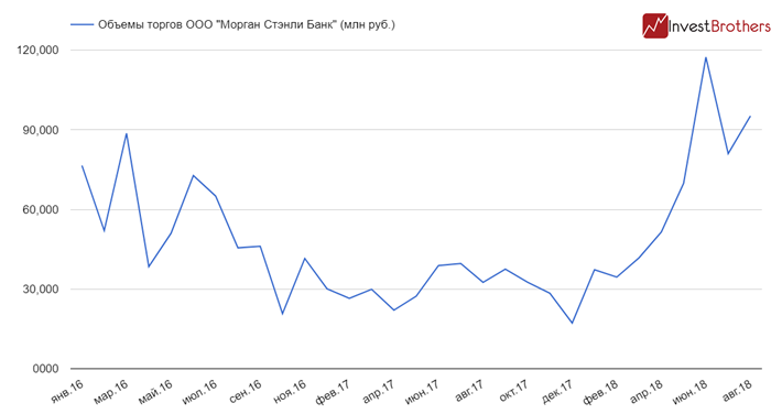 Если в январе и феврале месячный объем торгов был равен 34-37 млрд рублей, то в июне он подскочил до 117 млрд. По итогам августа он немного снизился, но был равен 95,2 млрд.