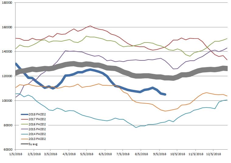 Как правило в сентябре запасы начинают расти. При этом: