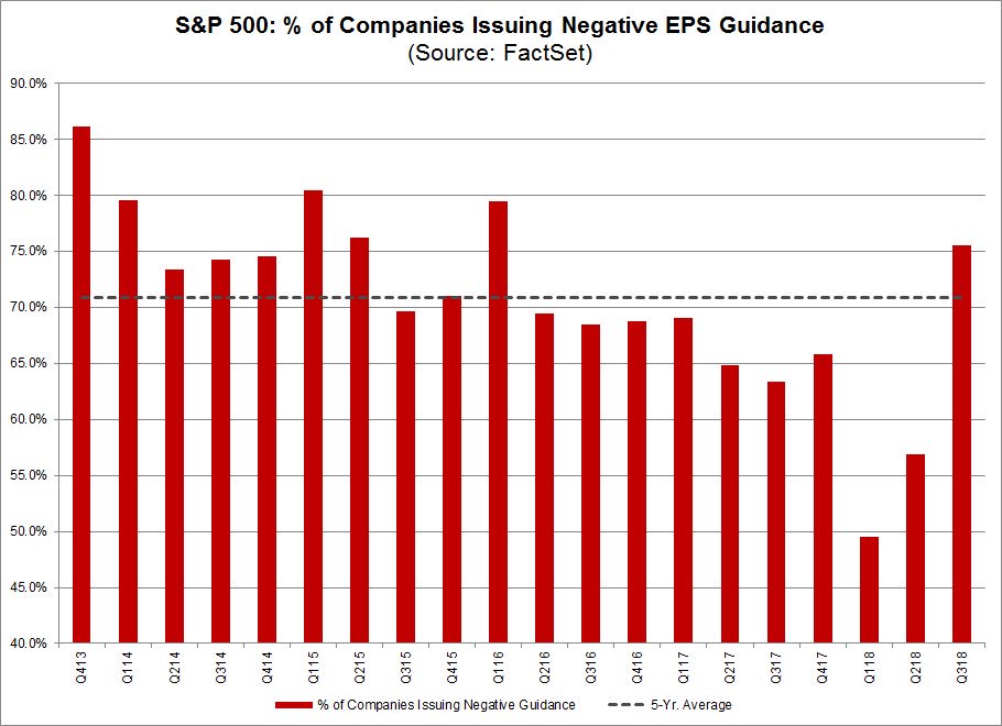 По данным за 3 квартал 2018 года снижения прибыли на акцию ожидает в штатах максимальное количество компаний с 1 квартала 2016 года:
