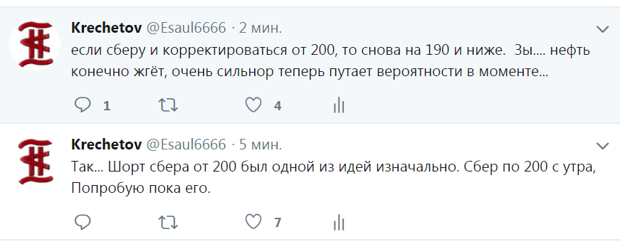 Всех приветствую. Вчера отстопился по нефти. Сегодня с утра зашортил сбер, уже несколько раз писал что собирался попробовать пошортить его от уровня 200. Сегодня утром он данный уровень показал: