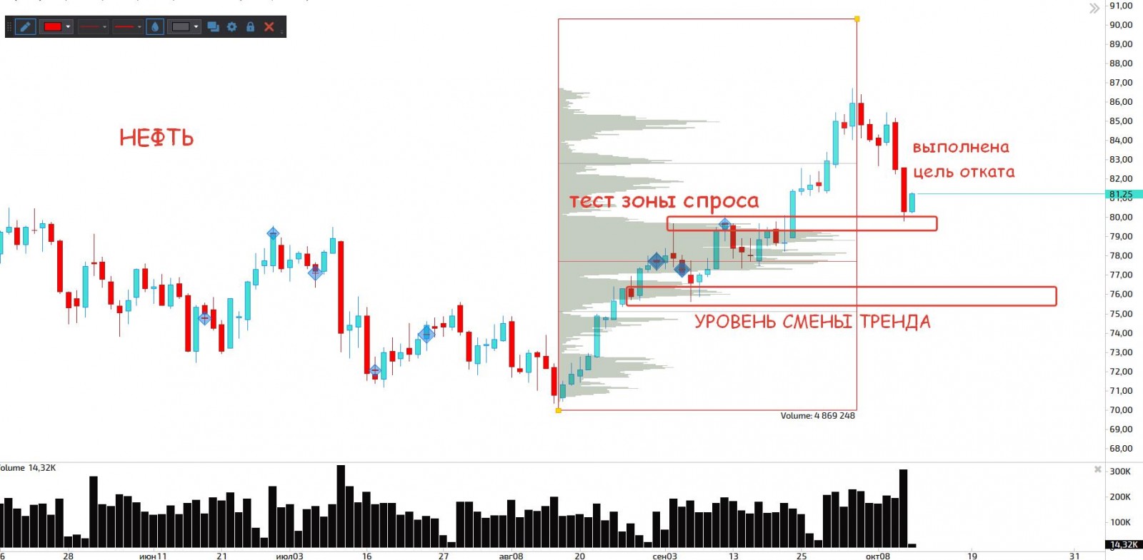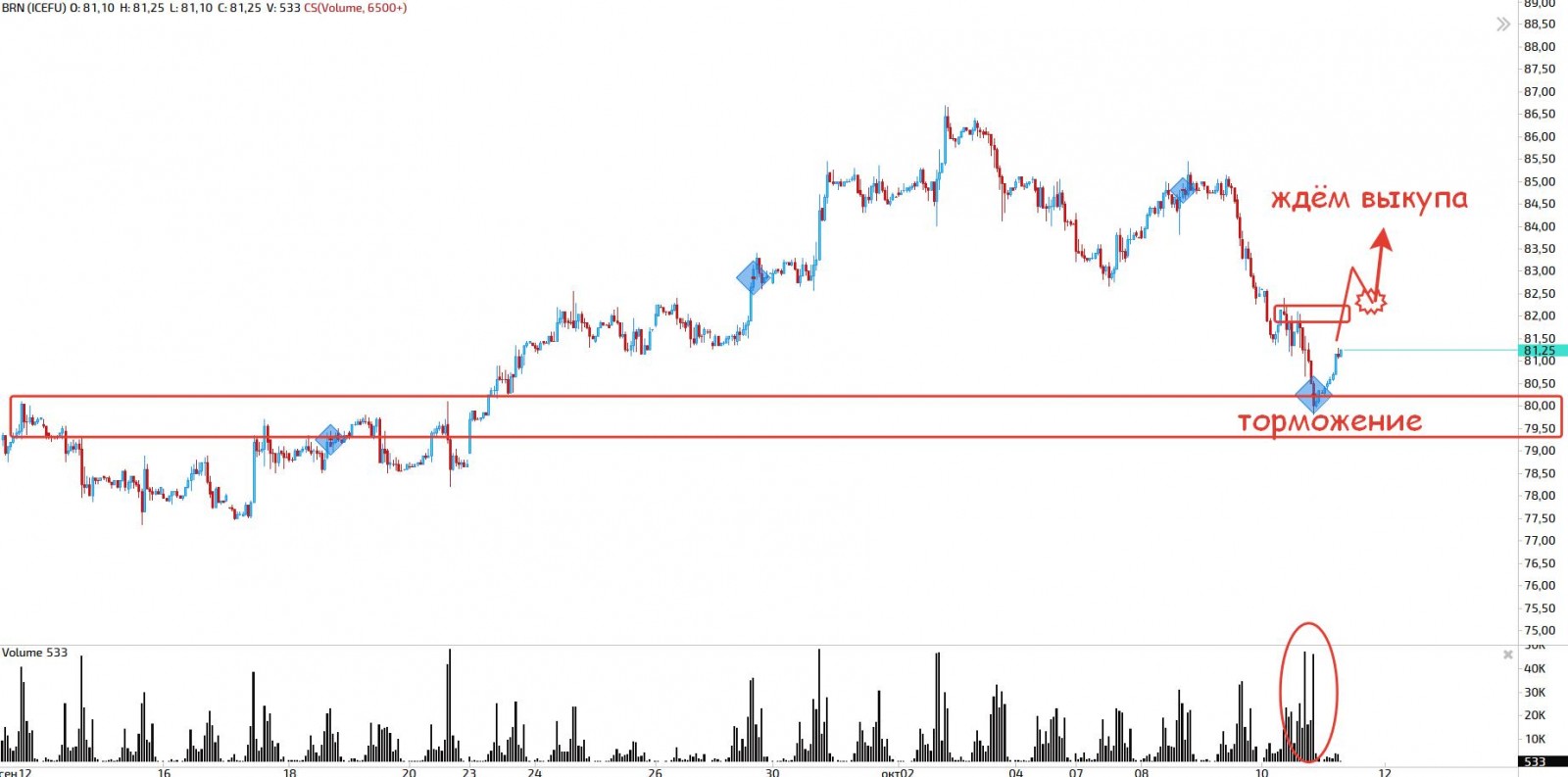 Уход на 80 четко был виден когда мы тестировали сверху 85, что было замечено в последнем видео обзоре. Сейчас осталось только дождаться подтверждения отскока: