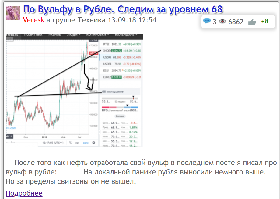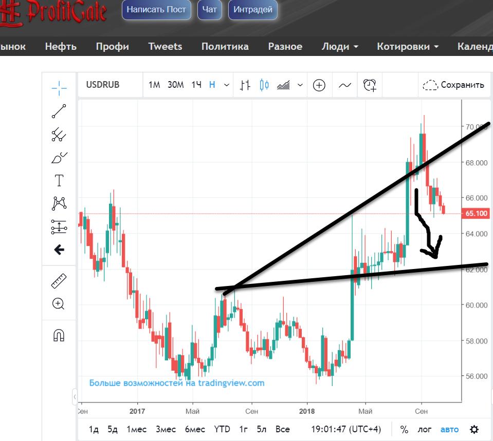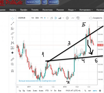 Это мой пост от 13 сентября сброшенный ещё на хаях по доллару к рублю: