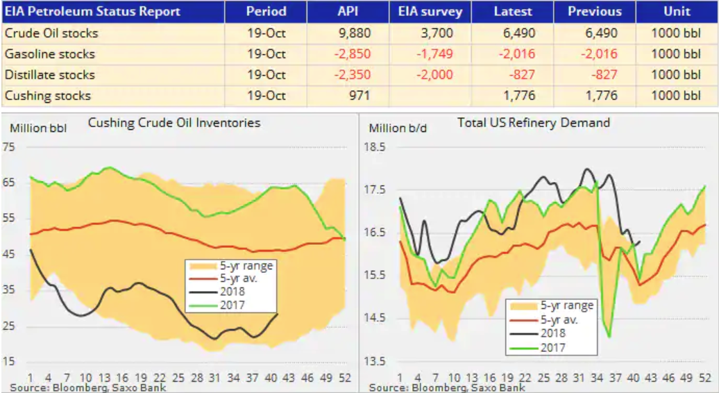 Вчера рынок получил шокирующую статистику от американского института нефти, по данным института рост запасов нефти в США произошёл сразу на 10 млн. баррелей. Если это подтвердится сегодня данными министерства энергетики это будет самый большой недельный прирост с февраля 2017 года.