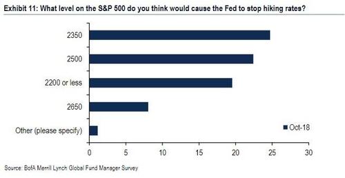 ФРС начнёт спасать рынки если SP500 упадёт до 2390. - именно к такому мнению в среднем пришли опрошенные Bank of Amirica респонденты, отвечая на вопрос до какого уровня должен упасть индекс SP500, чтобы ФРС начала поддерживать рынки и прекратило агрессивное повышение ставки.