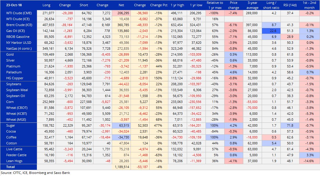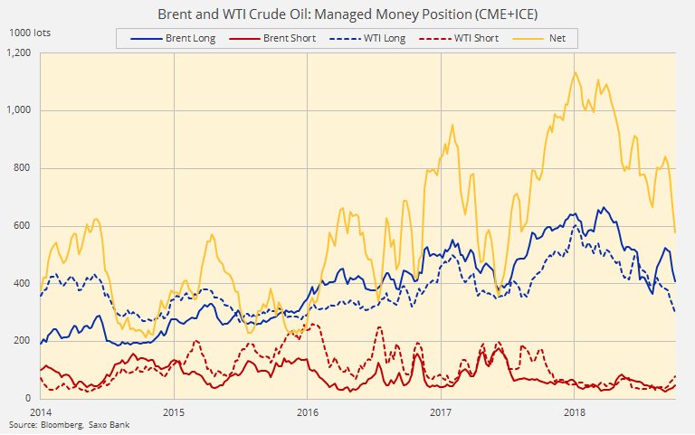 Общие нетто позиции по Brent и WTI ушли на 15 месячный минимум. Что говорит о том, что спекулянты вовсе не так уж уверены в росте нефти в связи с санкциями против Ирана: