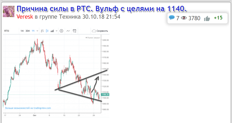 А это скрин предыдущего моего поста по индексу РТС. Вульф отработан: