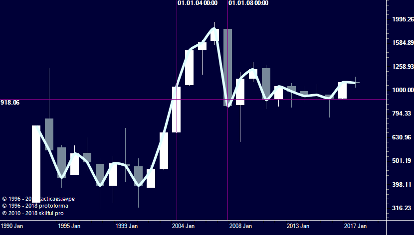 Квартальный План, цена после пробоя уровня НР не достигла 100% НР з-за годовой поддержки и в настоящий момент "болтается" в районе трендовой: