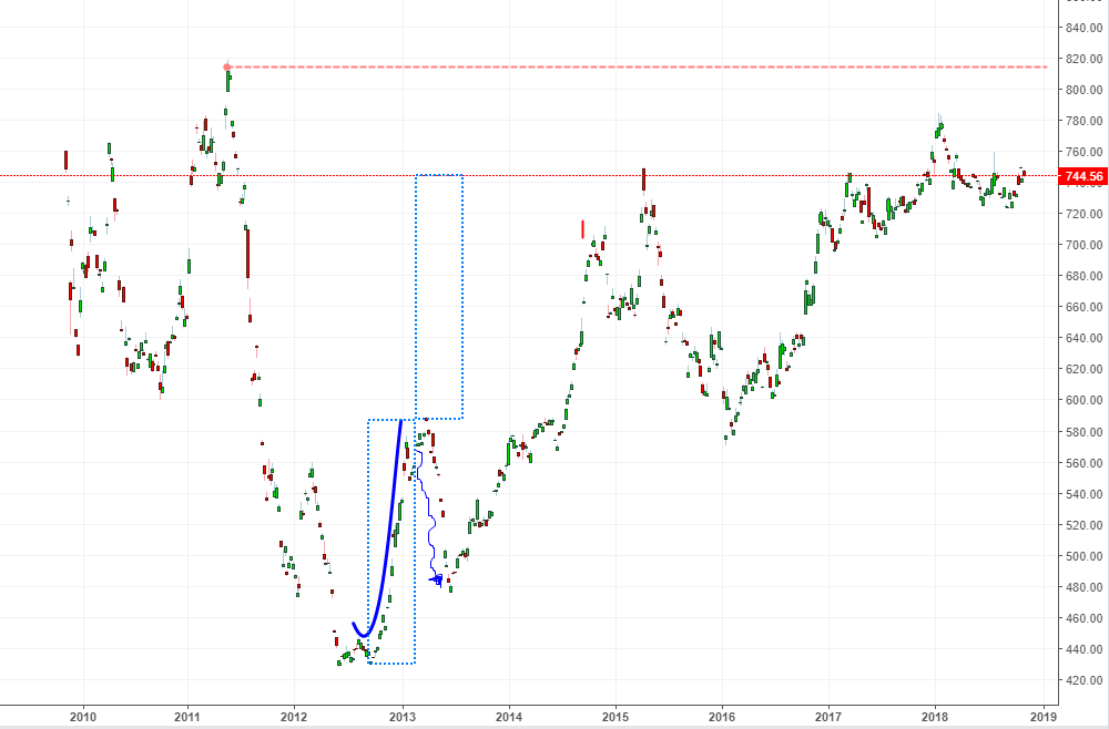 Рынок сейчас в бычьей стадии и подходит к сильному сопротивлению. На скрине одно из свойств параболического движения: