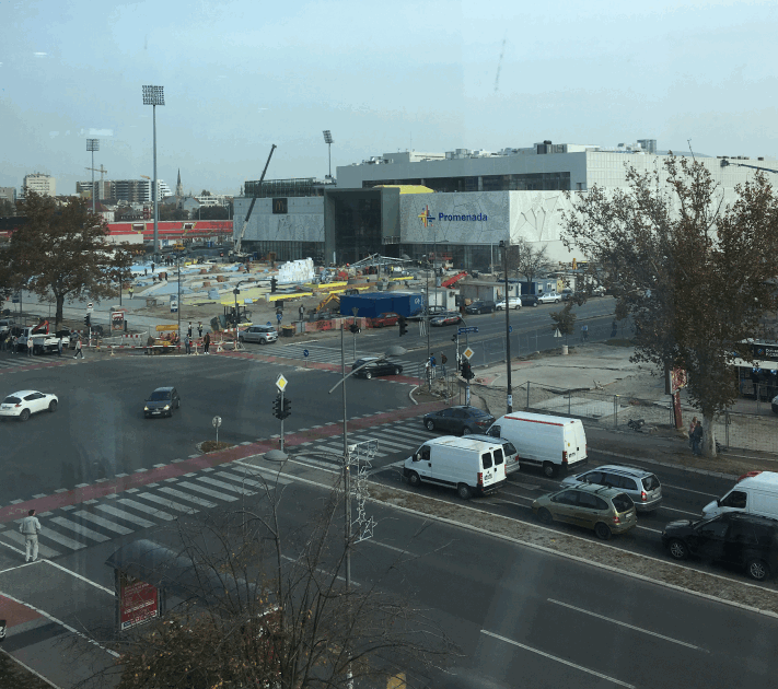 Пьём кофе (сербы ещё те кофеманы) напротив строящегося нового торгового центра: