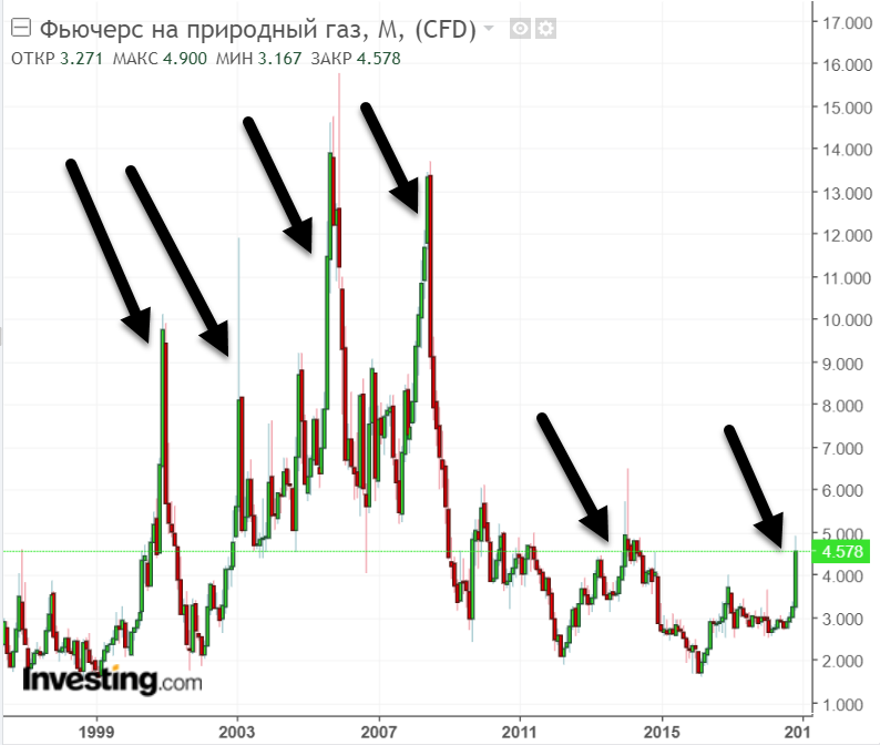Я приведу картинку которую сейчас все активно обсуждают. Это резкий взлёт цен на природный газ в США:
