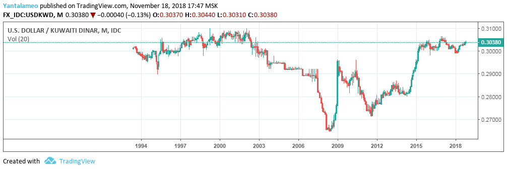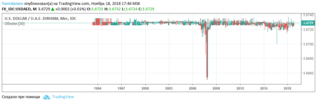 лидеры можно выделить лишь две - USDAED-Эмиратовский Дирхам, (с 1989 по 2018гг. изменился лишь на 0,02$), текущий курс