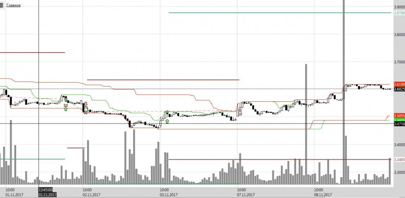 - ИнтерРАО - Лонг. Купил по 3,5235. Тейк 3,878. При уходе ниже вчерашнего минимума крою лонг.