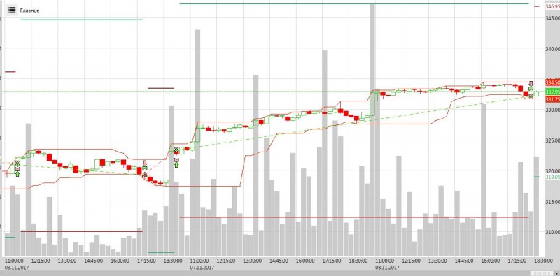 - Роснефть - шорт. Вечером перевернулся в шорт по 332,35. Тейк сейчас 319,05. Лонг выше максимума;