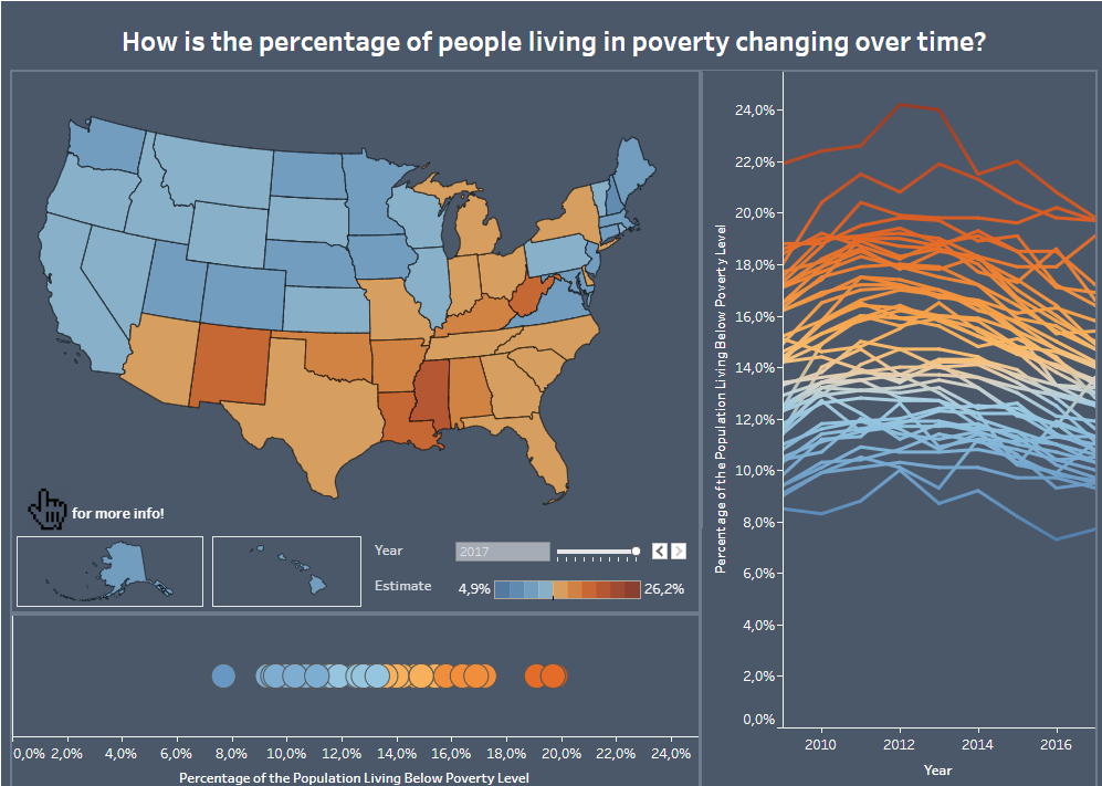 На картинке мы видим градацию штатов по количеству проживающих в них бедных людей в процентном отношении: