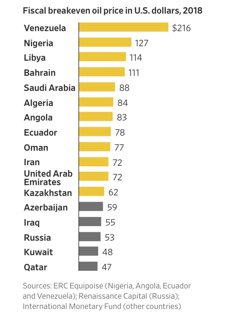Стоимость нефти при которых бюджеты стран становятся бездефицитными.