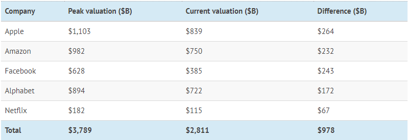 Как видим на сегодняшний момент картинка выглядит не так уж радужно. С лета пять крупнейших технологических гиганта потеряли 1 трлн.$ капитализации от своих пиков и официально перешли к медвежьему рынку.
