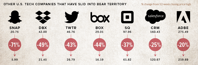 Facebook и Netflix находятся на медвежьей территории в течение нескольких месяцев, но остальные члены FAANG только недавно капитулировали: