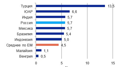 А это премия доходности десятилетних гособлигаций к казначейским облигациям США: