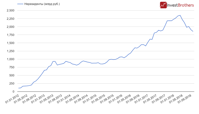 В текущем году, начиная с апреля, нерезиденты распродавали российские активы. К началу четвертого квартала 2018 г. иностранные инвесторы держали в своих портфелях ОФЗ на 1,85 трлн рублей. На наш взгляд, их массовый выход возможен, но он вряд ли окажет более сильное влияние на динамику цен и на курс рубля, чем в апреле текущего года.