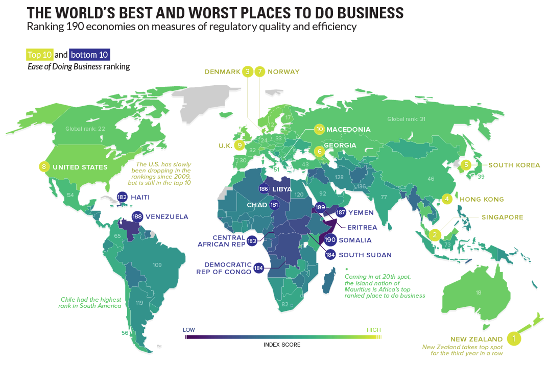 Карта мира по лёгкости ведения бизнеса