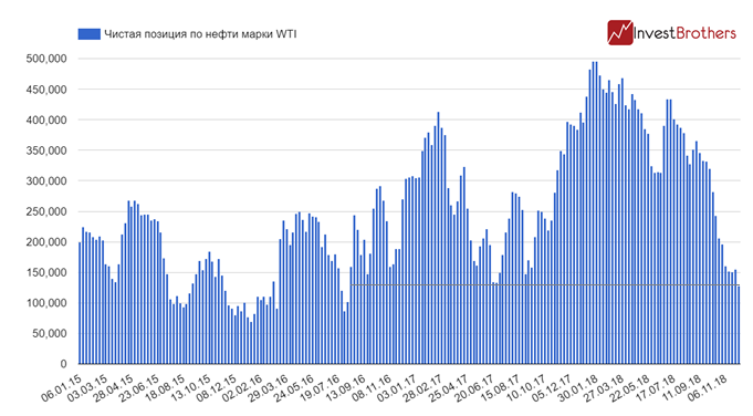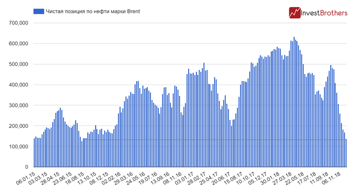 По данным Комиссии по торговле товарными фьючерсами, к 04 декабря чистая длинная позиция хедж-фондов опустилась до 128,3 тыс. контрактов, чего не было с февраля 2016 г.