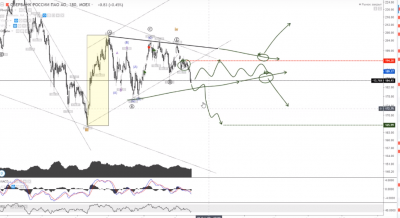 Пока сбер не может отскочить даже на ретест пробитого уровня снизу. Это напрягает в плане того, что сбер чаще всего ходит вместе с сырьём и той же сипишкой.
