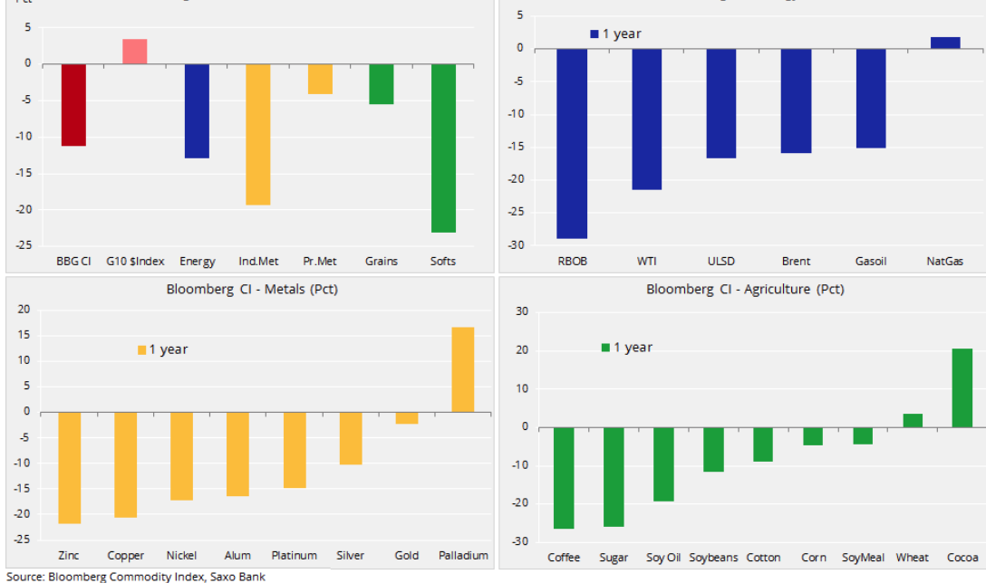 В 2018 год товарный индекс блумберг упал на 10%. Это худштй показатель с 2015 года, когда активно валилась нефть в ходе войны Саудовской Аравии и американских сланцевиков за свои доли на рынках.