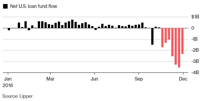 В декабре плечевые долговые фонды показали худшую месячную доходность с 2011 года. При этом прошлогодняя доходность таких фондов является третьим худшим результатом за последние 20 лет. В 21 веке долговые фонды имели только два года с отрицательной доходностью это 2008, когда фонды потеряли 29% и 2015 с доходностью -0,69%. Общие продажи плечевых долговых инструментов упали до 814 миллиардов, что составило падение в 25% по сравнению с рекордом в 1,1 триллиона в 2017 году.