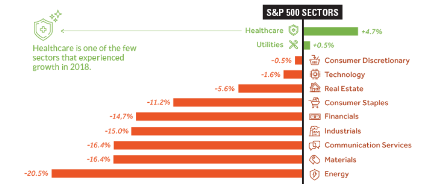 Единственными секторами подросшими за год были сектор здравоохранения и сектор инфраструктуры. Это традиционные защитные сектора на медвежьем рынке.