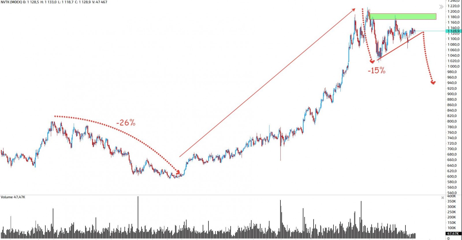 Тут мы в фазе отката, пока не завершенной, видимо бумага ждёт того, что случится с нефтью в ближайшее время.