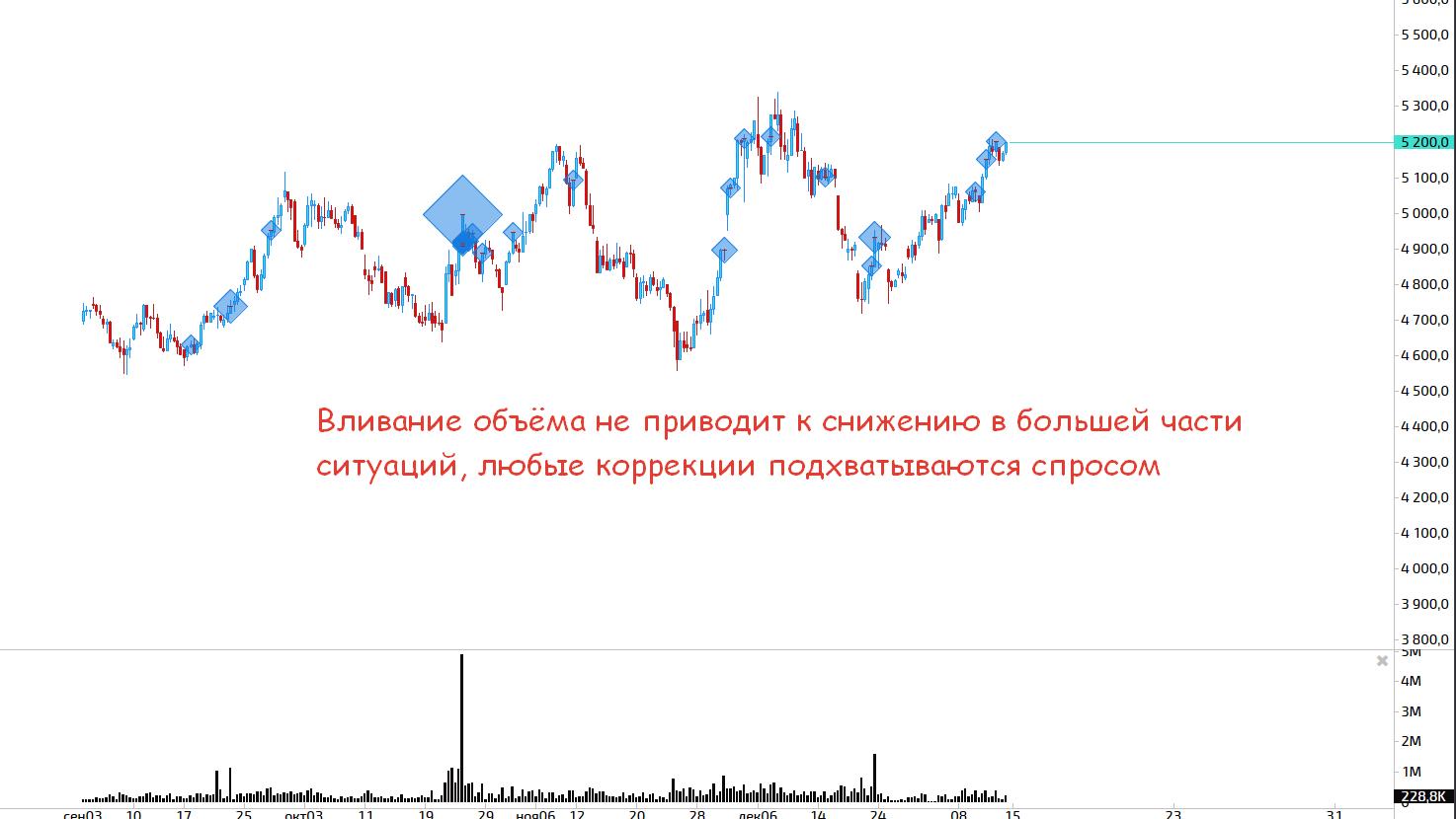 Вывод по акции простой, хороша для спекуляций как в лонг, так и в шорт, удерживать лонговые позиции наиболее перспективно в рамках 3-7 дней, ближайшая вероятная цель 5500.