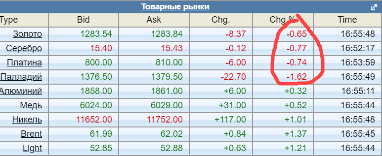 Следующий таблица это сырьё. В обед сырьё всё росло очень сильно. Но к вечеру многие инструменты заваливают. Отдельное внимание на драг металлы в которых я так долго ждал откат: