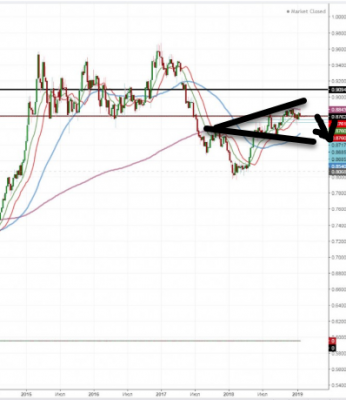 Уровень 0,8762 мы тестили первый раз 13.08.18, пробили в начале ноября и откатили ниже, затем вернулись опять наверх и сейчас