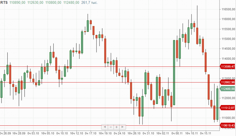 В текущей ситуации во фьючерсе на индекс РТС локальным сопротивлением служит отметка 112800п. и основным 113600п. Поддержки расположены на 111500п. и 110600п.