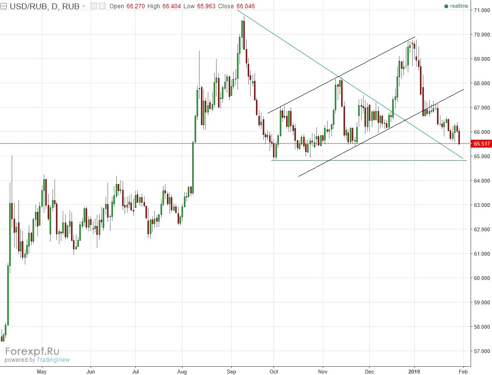Основной вопрос не в том, будет 65 или нет, а в том — покупать ли там? Если тренд реально развернулся, то любой отскок нужно использовать для шорта Сишки (и продажи доллара у кого есть)! Конечно играть против ЦБ не хочется, но он еще года 2-3 покупать может, сидеть в валюте все это время — сомнительное удовольствие.