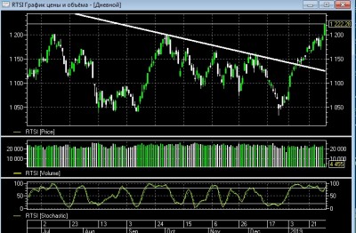 Формально РТС пробил уровень 1200 вверх. Для начала я посмотрю будем ли мы его тестировать сверху. В случае теста и похода вверх уйду на забор.