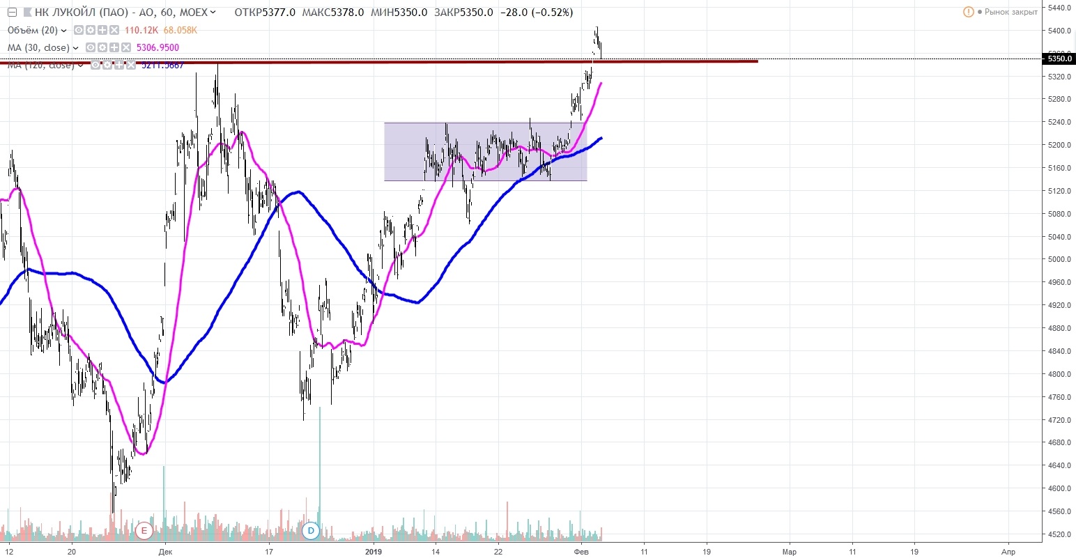 4. По Лукойлу если отскочим от 5350 (текущих цен) вверх то лонг, если уйдем вниз то шорт. В этой сделке я уверен меньше всего из вышеописанных, поэтому поставлю очень короткий стоп.