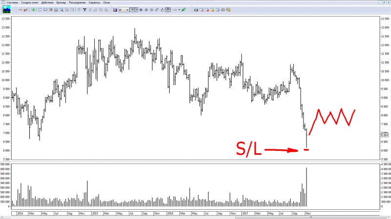 Ну что, прошли первые серьезные покупки по Магниту. Теперь нужно подождать несколько недель и посмотреть, удержится цена или начнет заваливаться вниз. Если я увижу такую картину (смотри картинку ниже), то можно говорить, что в рынке присутствует серьезный покупатель. Соответственно - буду брать акции на радость мой бабке)